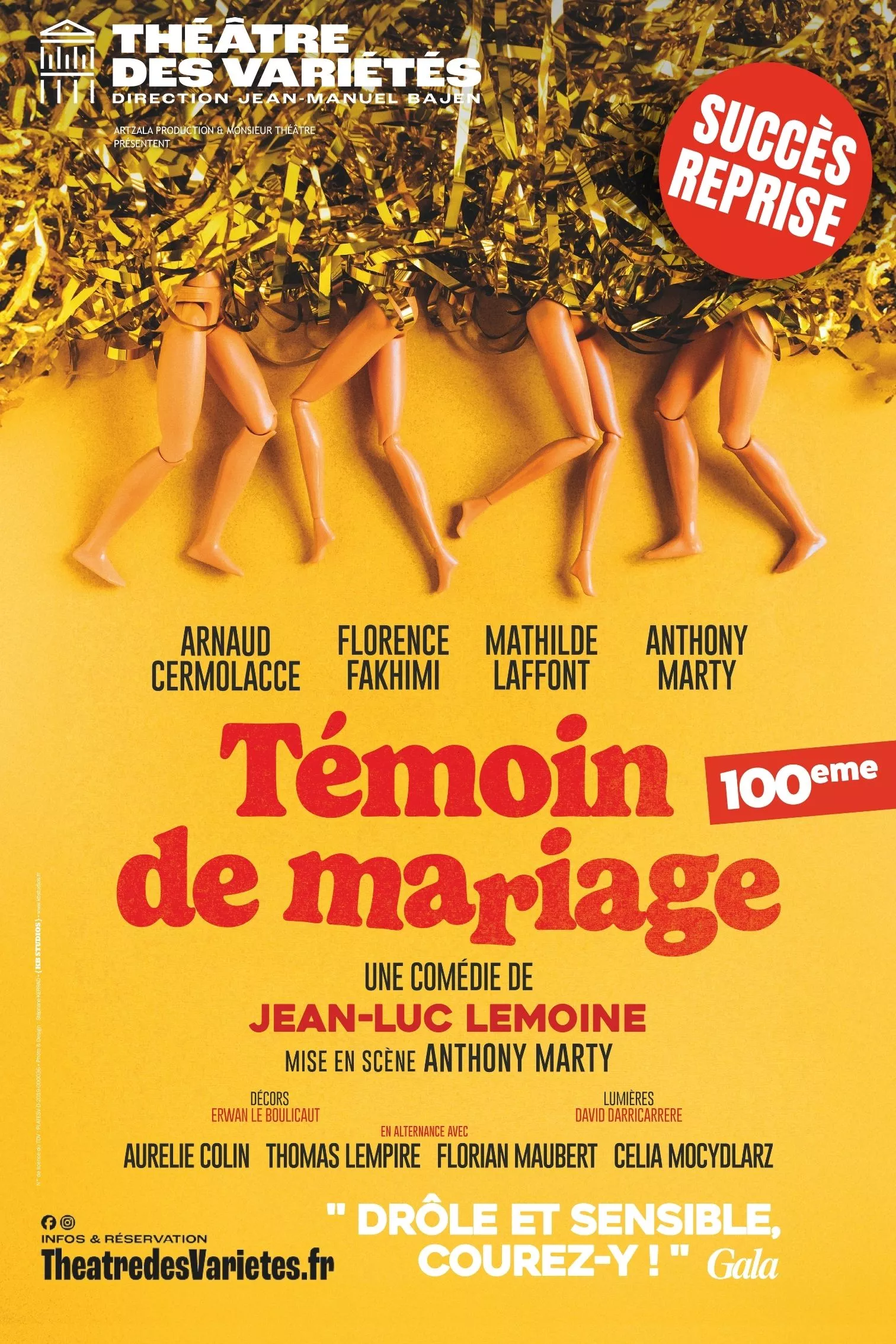 🎭 Vu « Témoin de mariage » de Jean-Luc Lemoine au théâtre des Variétés, une excellente comédie de boulevard, drôle, enlevée et joyeuse, avec maris, femmes et amants mais sans les portes qui claquent. Du rire, derrière lequel émergent quelques failles et vulnérabilités, porté avec brio par 4 comédiens épatants. Parfait pour un dimanche après-midi léger et guilleret…
